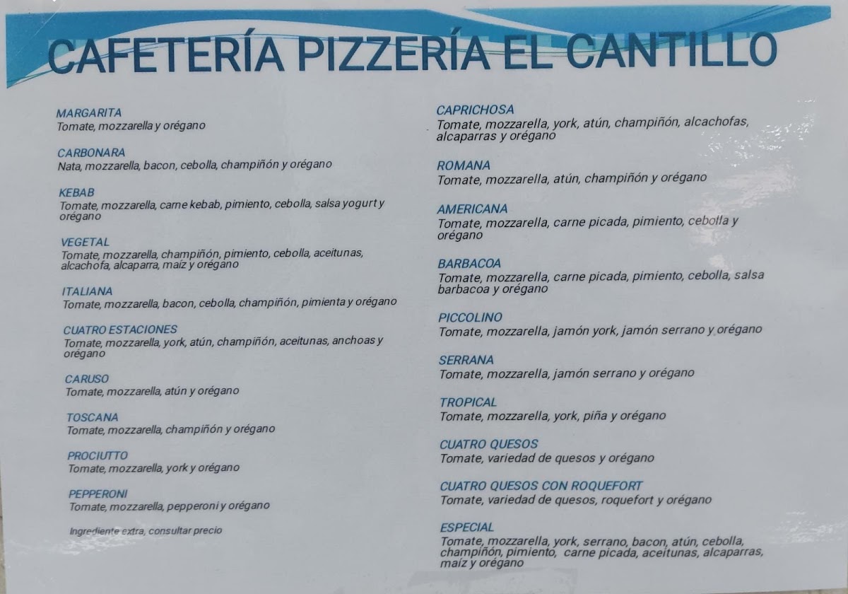 Whether you're a pizza aficionado or simply in search of a cozy spot for coffee, Cafetería Pizzería El Cantillo is not to be missed!